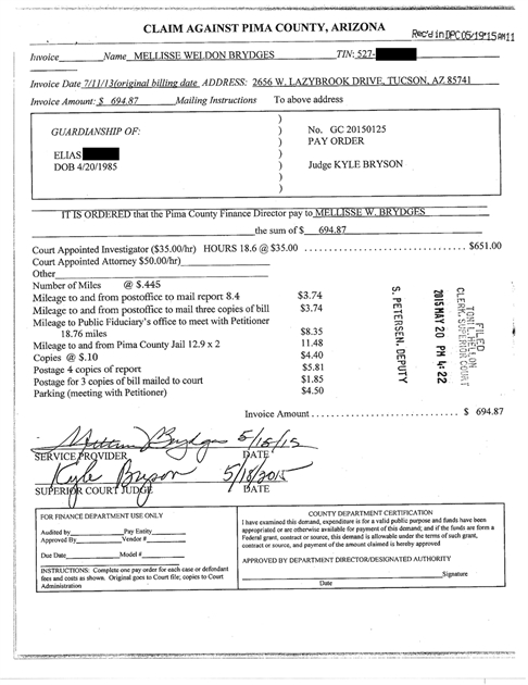 This case is one example, of many, where Brydges exceeds the standard 10 hour limit for investigations, before she asks for approval from the probate division. She is always granted excess time even though she is told she must ask before she spends the addition time on a case!!!